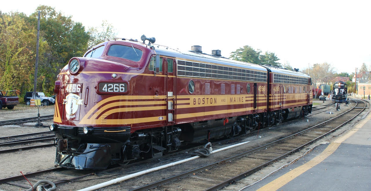 I thought you would enjoy these two Boston & Maine F-7's (belonging to the 470 Railroad Club of Maine) The pair are idling in front of the North Conway, NH depot, the day before our all-day trip up to Mt. Washington.